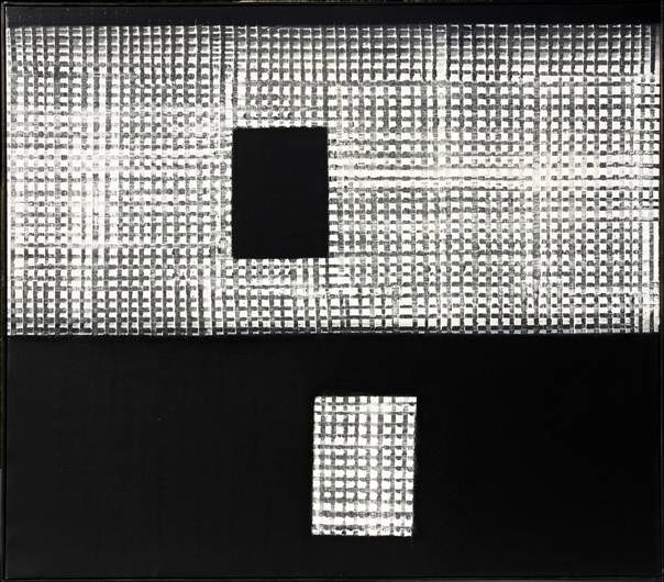 Heinz Mack, Dynamische Struktur mit weißem und schwarzem Quadrat, 1960, Kunstharz auf Nessel, 140 x 160 cm, © Atelier Mack, VG Bild-Kunst, Bonn 2017
